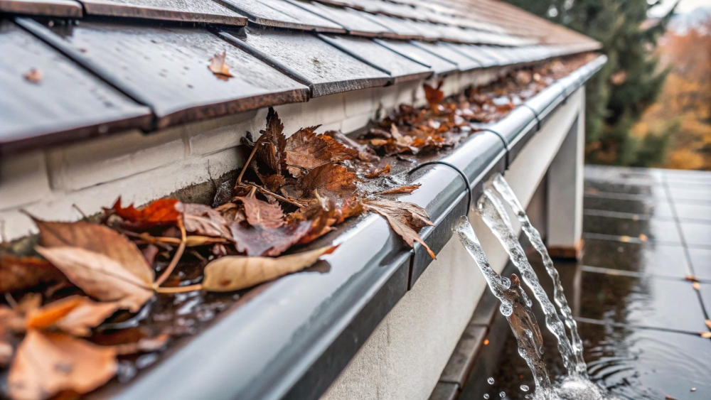 Clearing leaves and debris from gutters and downpipes to prevent overflows and water damage.